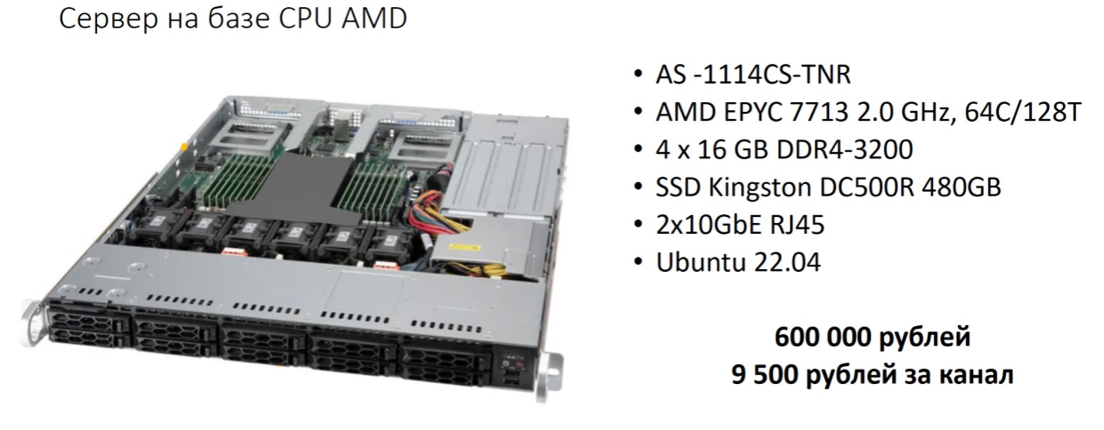 Либо можно посмотреть в сторону систем на базе процессоров AMD (64 MPTS со средним битрейтом 100 Мбит/с каждый):