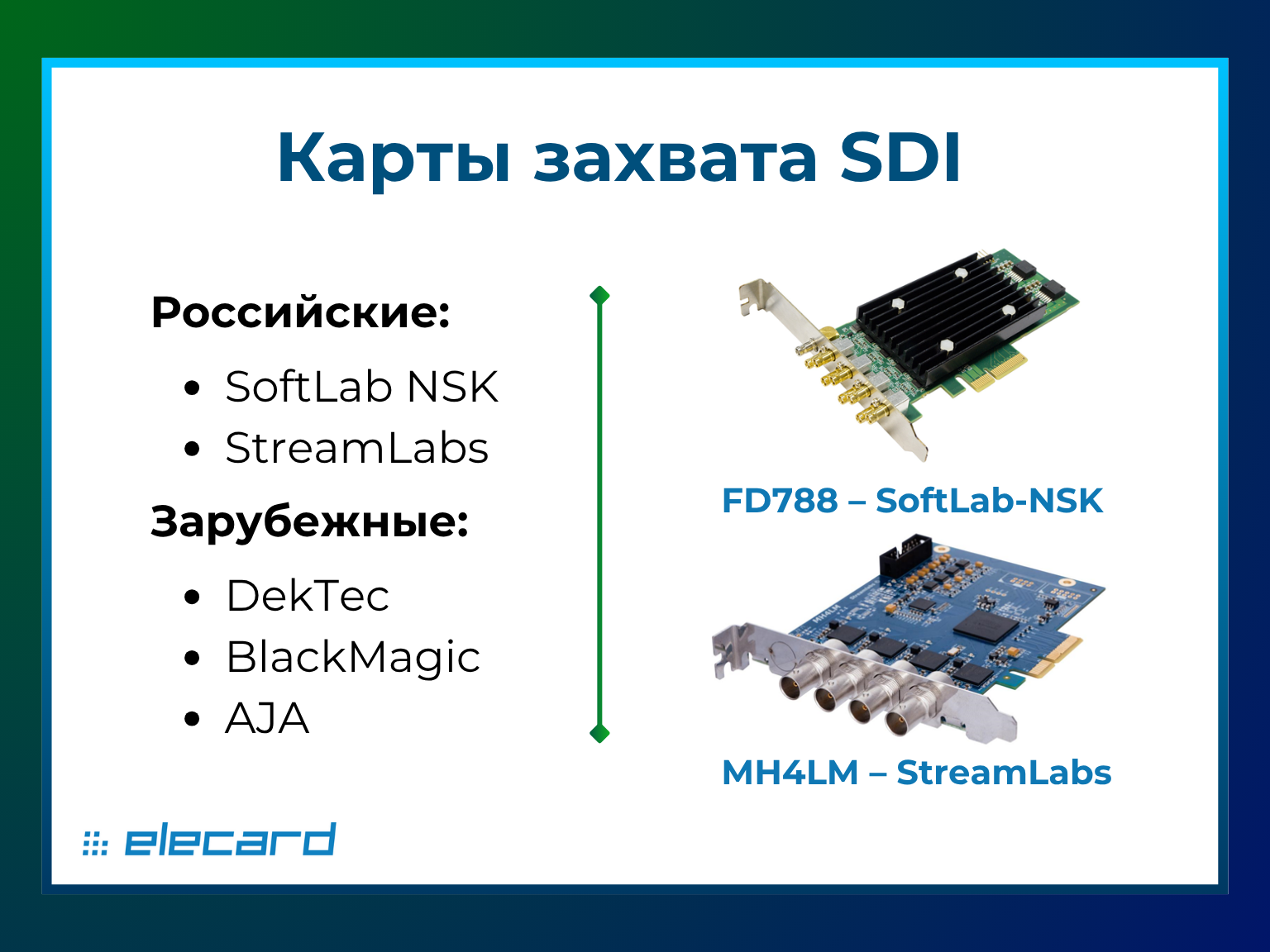 - Также при реализации проекта могут возникнуть проблемы с поставкой и техподдержкой карт захвата от иностранных поставщиков в России. В связи с этим рекомендуем обратить внимание на отечественные решения.
